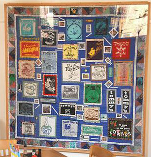 When I went over to her house, I was blown away with what I saw. Starting in 1998 in her spare time, Laura began to create the beautiful quilt hanging in our main dining room. The quilt is made from Granny’s t-shirt collection. What a beautiful tribute to her mom’s life with Tommy’s.